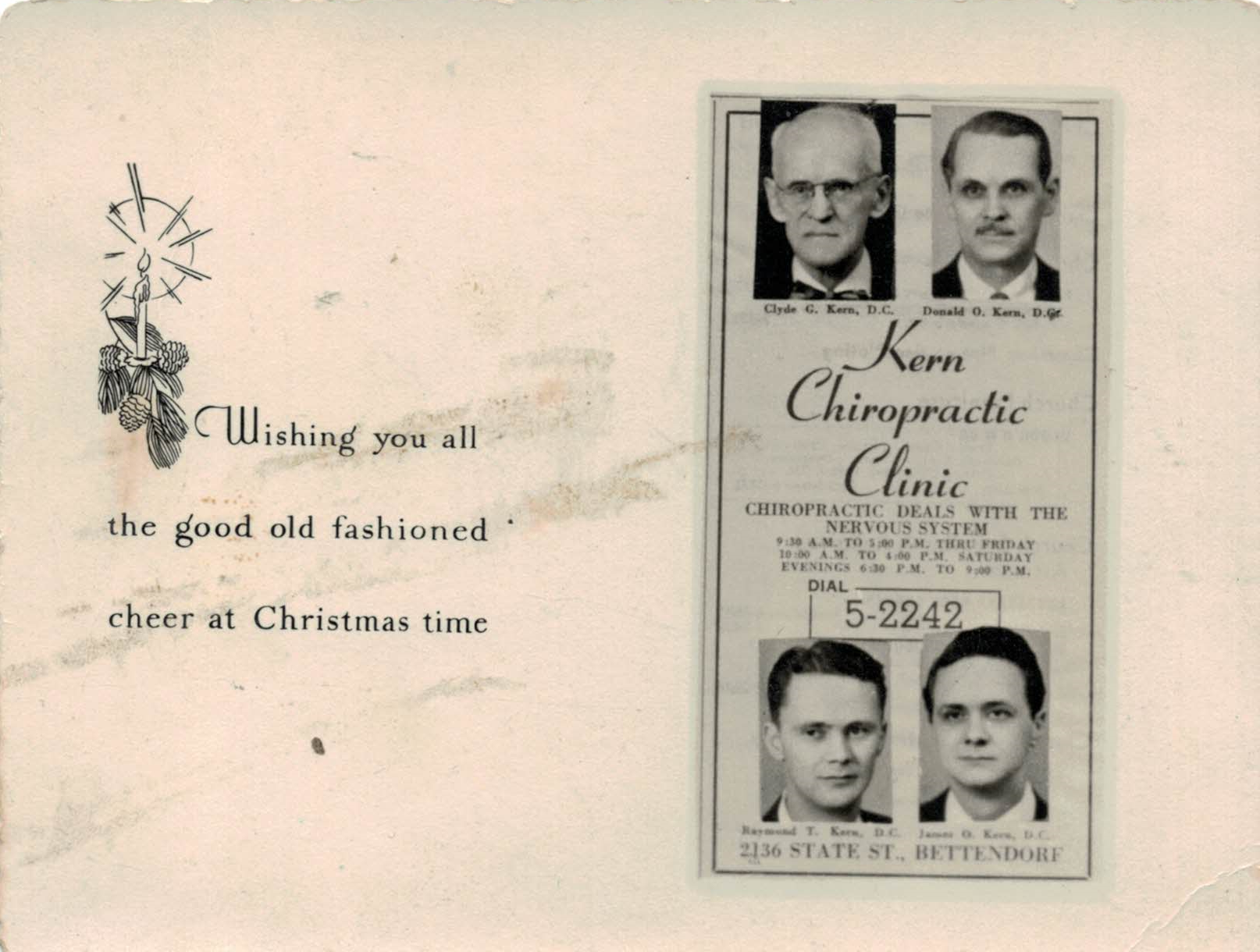 Original Kern Chiropractic Clinic — State Street, Bettendorf (historic card from the clinic)